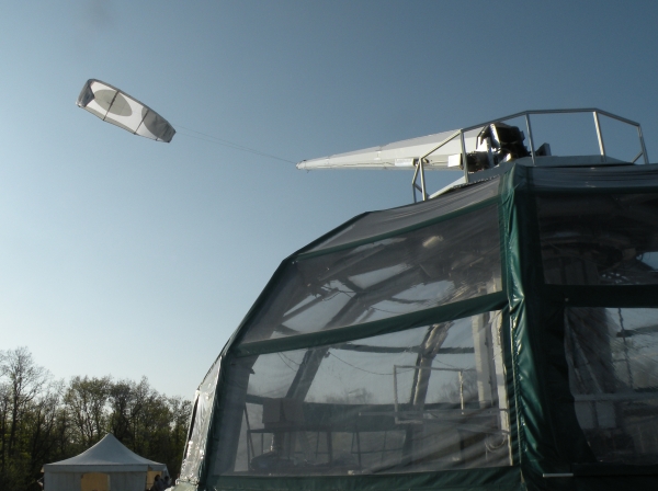 Этот кайт представляет собой 30-метровое крыло из углеродного волокна, на котором установлены ветровые турбины. Оно способно летать на высоте между 250 и 600 метров над землей и генерировать 600 кВт энергии. Полученная энергия передается в электросети через длинный трос, ведущей вниз к земле или к морским буям. Кайт будет летать петляя под прямым углом к ветру, имитируя путь вращающихся лопастей турбины, в то время как направляющие на крыле будут управлять траекторией полета. Кстати, эту компанию в середине 2013 года приобрел гигант Google, для своего подразделения Google X, которое специализируется на инновационных проектах.