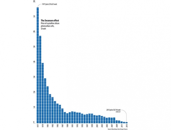 График падения стоимости солнечной энергетики